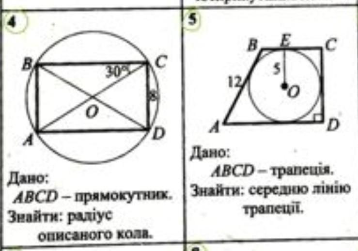 5) если провести радиус до нижнего основания то выйдет высота равная 10 и эта высота булет равна стороне СД. по свойству вписанной окружности. противоположные стороны равны. значит сумма протиаодожных сторон будет 22 а средняя линия 11
