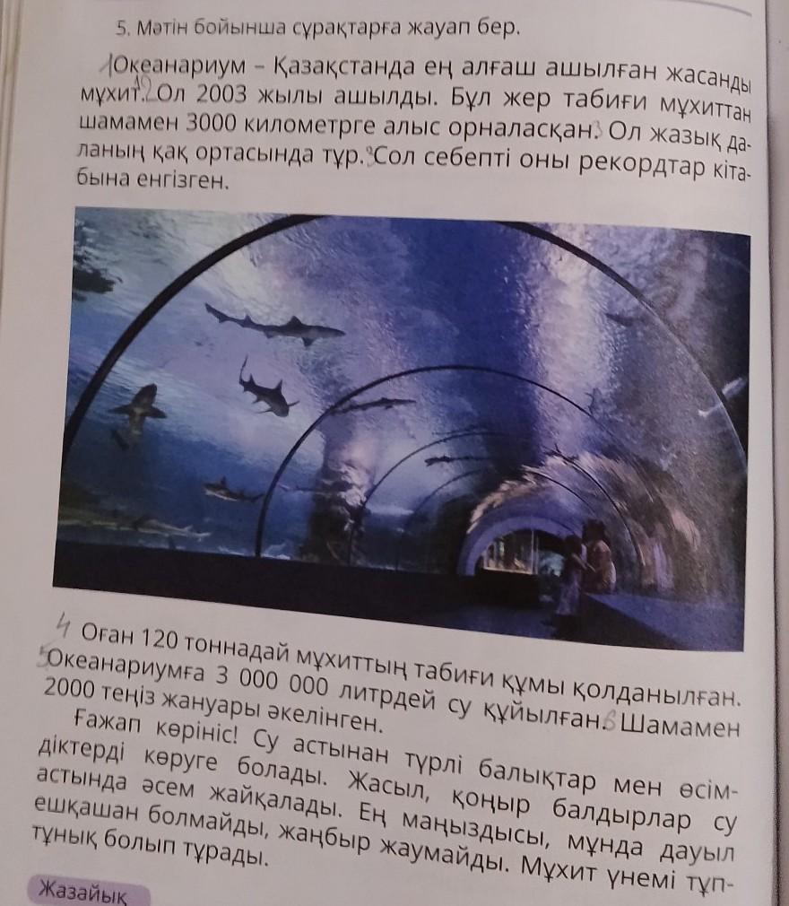 Океанариум - первый искусственный океан, открытый в Казахстане. Он был открыт в 2003 году. Это место находится примерно в 3000 километрах от естественного океана. Он расположен посреди равнины. Именно поэтому его внесли в книгу рекордов. На него ушло около 120 тонн природного морского песка. В океанариум влили около 3 000 000 литров воды. Привезено около 2000 морских животных. Восхитительный вид! Под водой можно увидеть различных рыб и растения. Зеленые и бурые водоросли красиво цветут под водой. Самое главное, чтобы не было штормов и дождей. Океан всегда стоит.