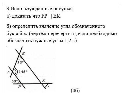 а). FP || EK так как если при двух паралельных и секущей односторонние углы образуют 180° то по 3 признаку паралельности прямых(если при пересечении двух прямых секущей сумма внутренних односторонних углов равна 180°,то прямые паралельны)эти прямые являются паралельными.