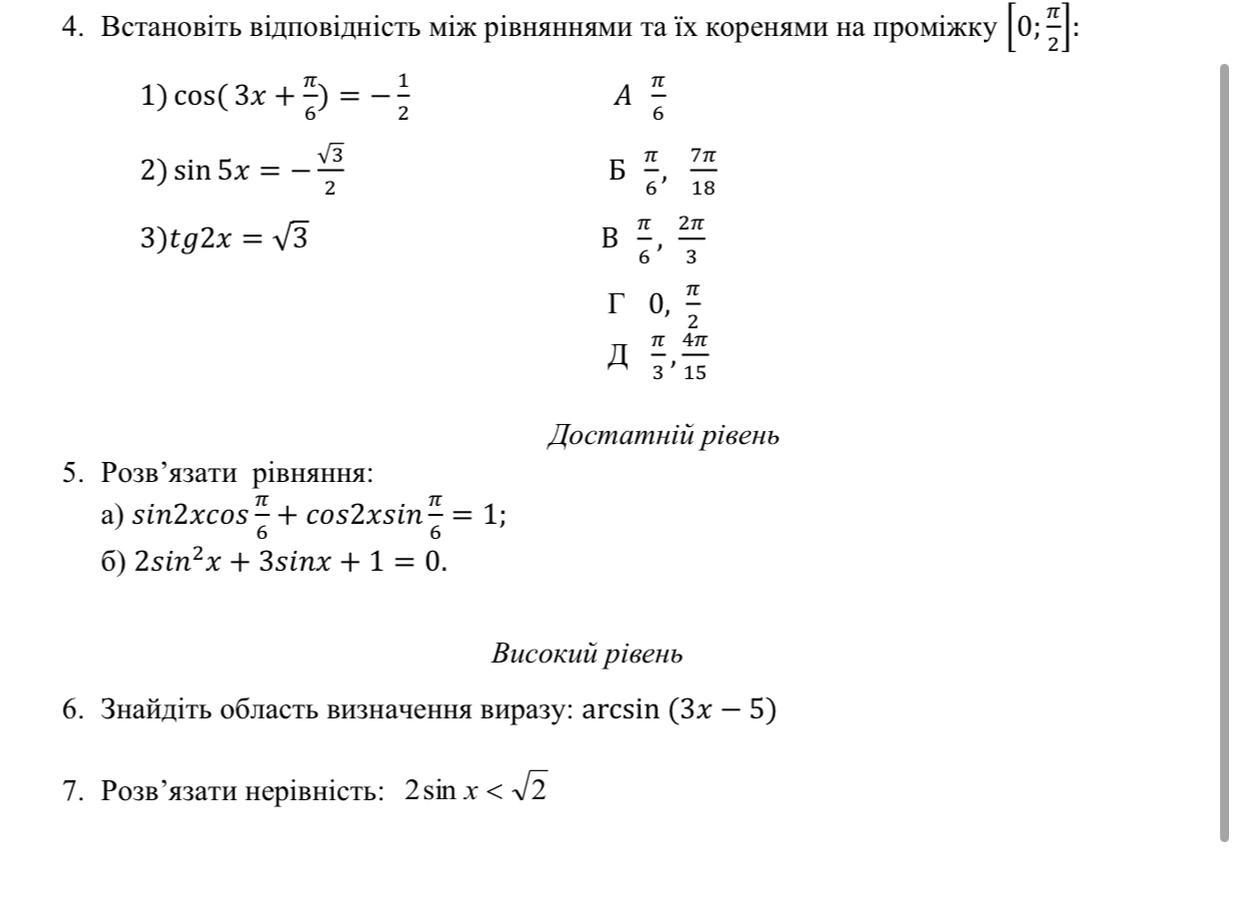 Відповідь: 3π/2 + 2πk, k є Z; 7π/6 + 2πk, k є Z;