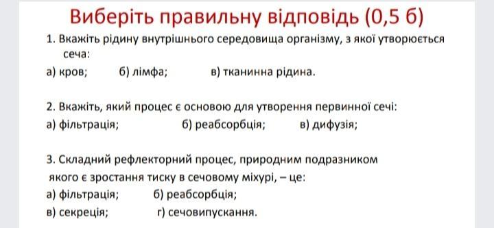 1) плазми крові в ниркових клубочках і зворотного всмоктування в канальцях більшості розчинених у ній речовин і води. Кров варіант А