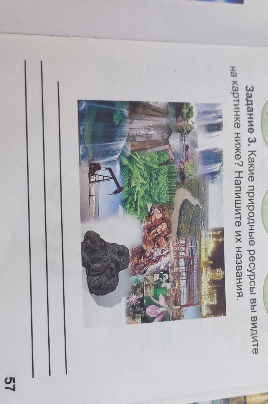 Задание 3. Какие природные ресурсы вы видите на картинке ниже? Напишите их названия.