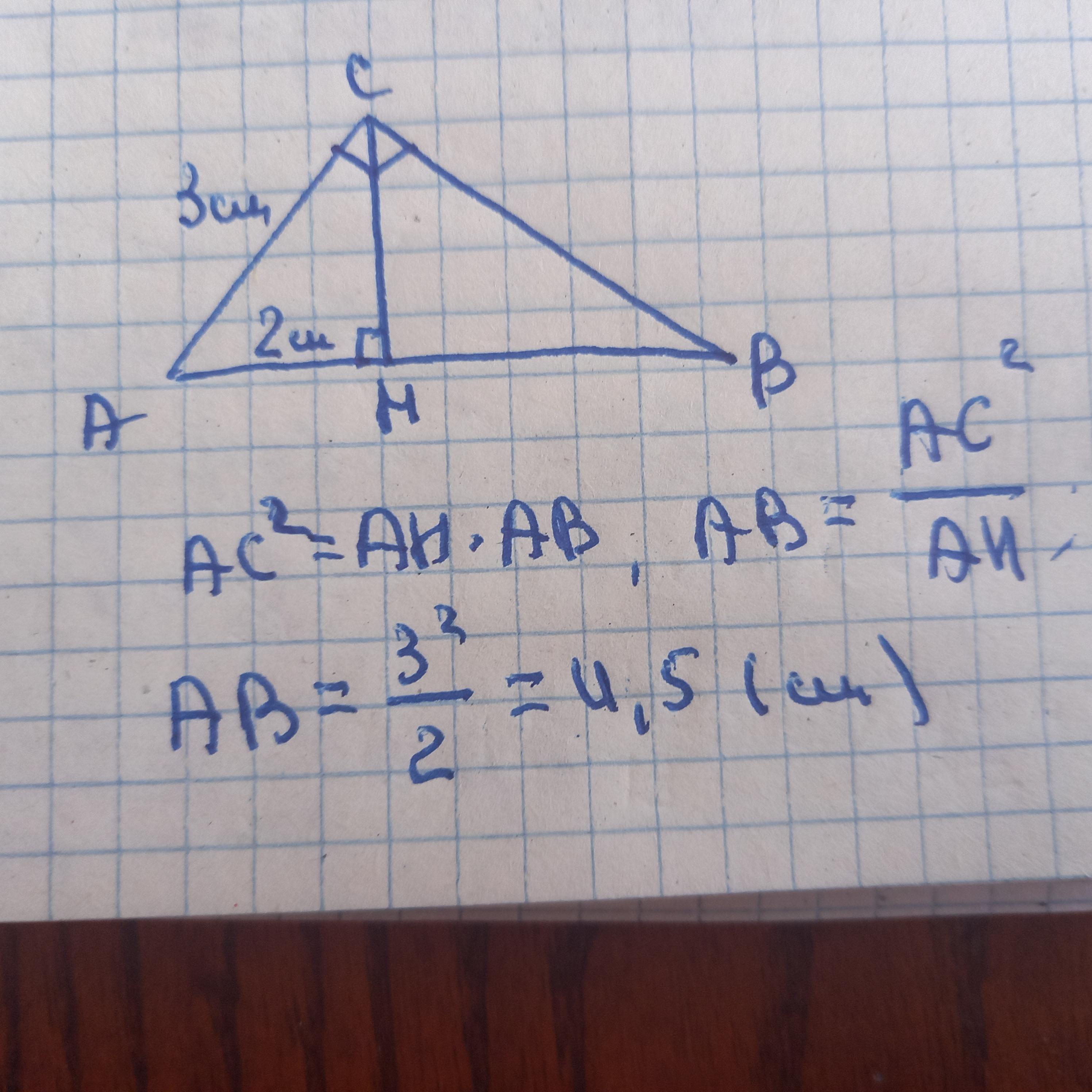 Катет прямокутного трикутника дорівнює 3 см, а його проекція на гіпотенезу 2 см.Знайдіть гіпотенезу