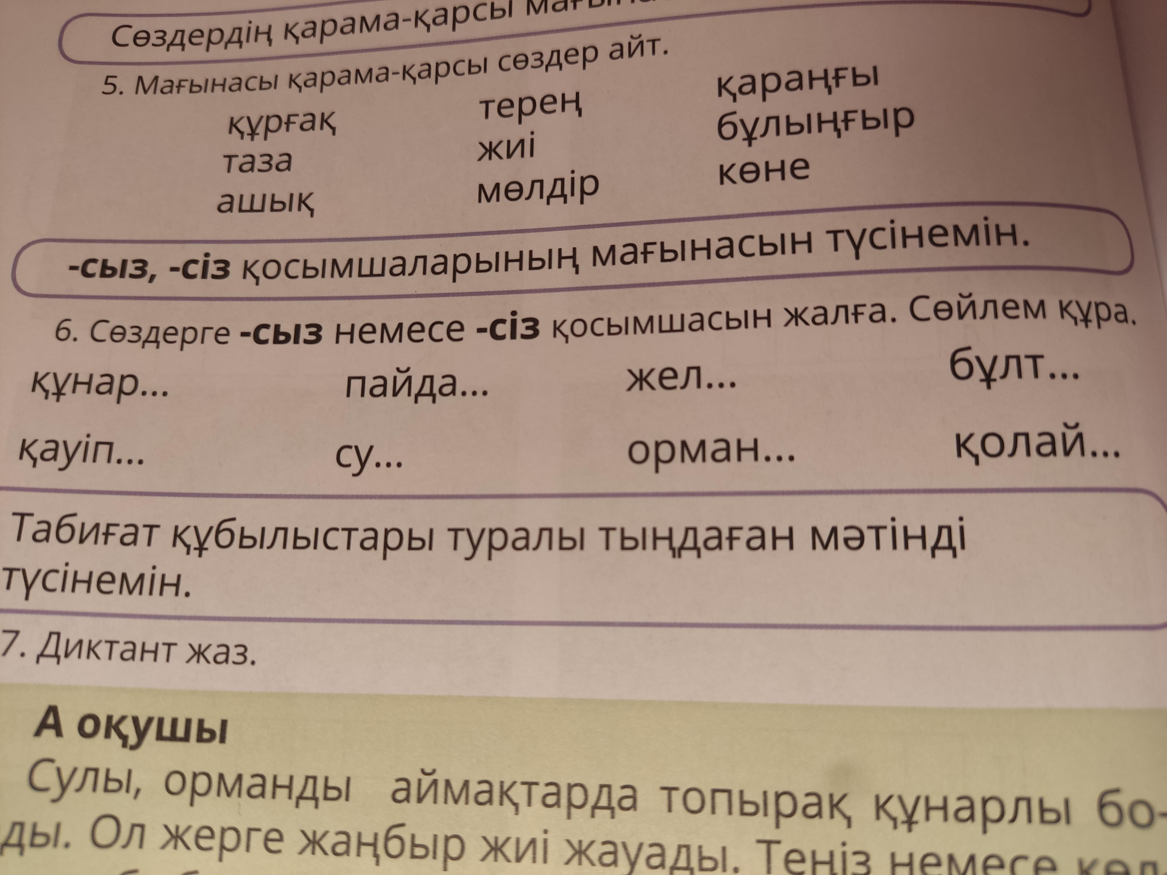 құнарсыз,қауіпсіз,пайдасыз,сусыз,желсіз,ормансыз,бұлтсыз,қолайсыз