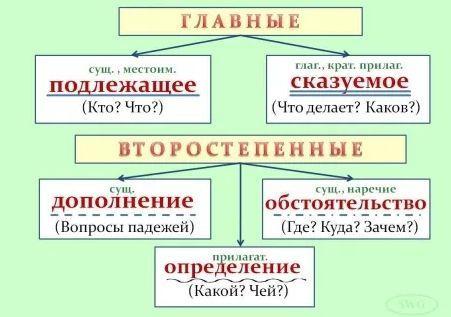 Члены предложения могут быть главные и второстепенные. Для большей наглядности их лучше изобразить в виде схемы (см. рисунок)
