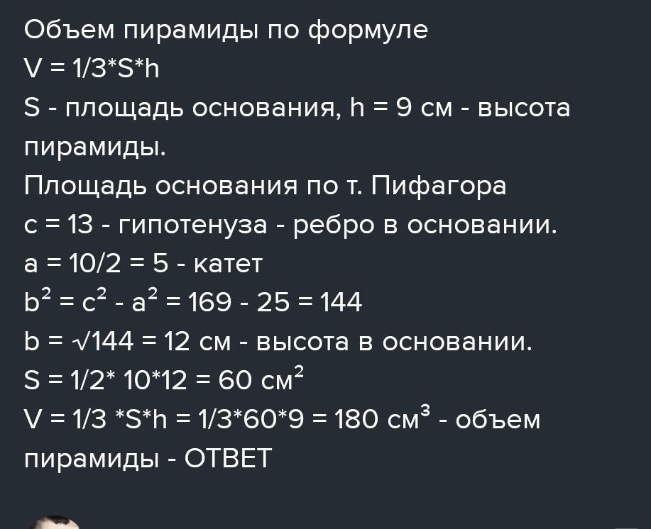 Основою піраміди є трикутник зі сторонами 13 см, 14 см і 15 см. Об’єм піраміди 252 см3. Знайти висоту піраміди.