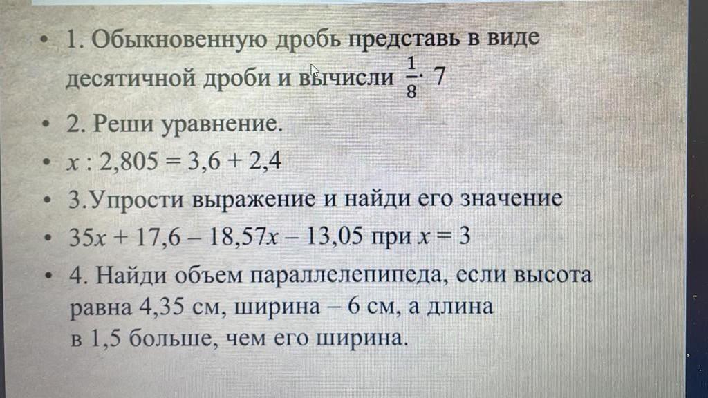 1/8 * 7 = (1 : 8) * 7 = 0,125 * 7 = 0,875
