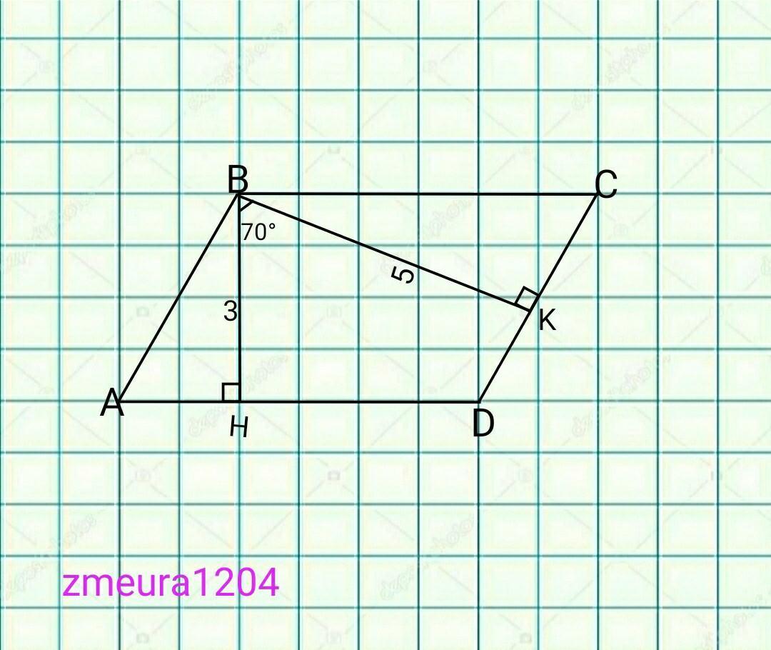 ∠A=∠C=70°, властивості паралелограма.