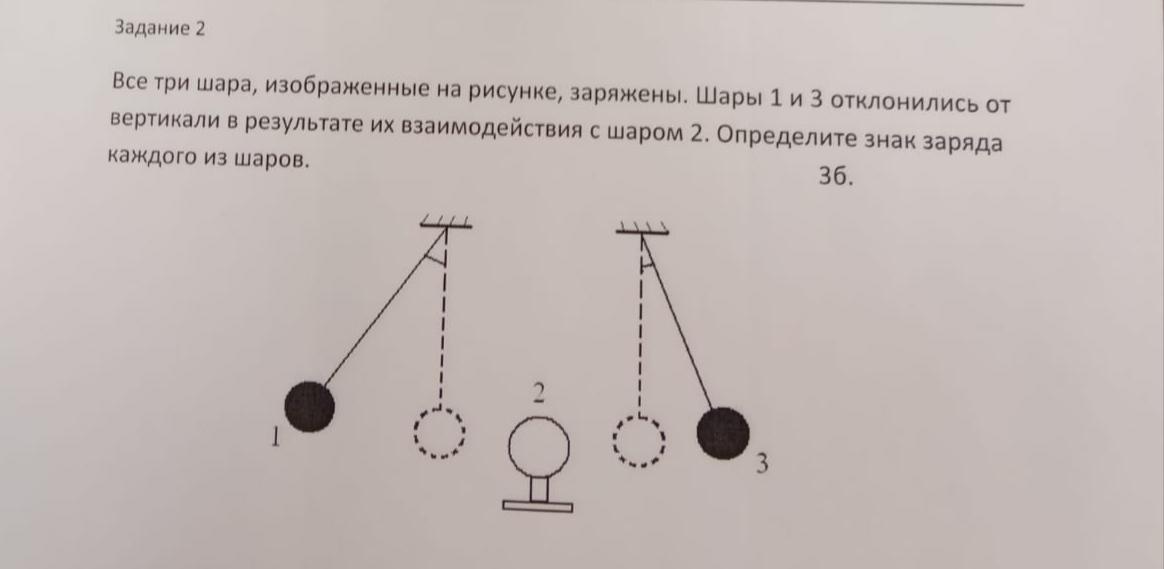 они все заряжены ПОЛОЖИТЕЛЬНО т.к они оба отталкиваются от 2 шара