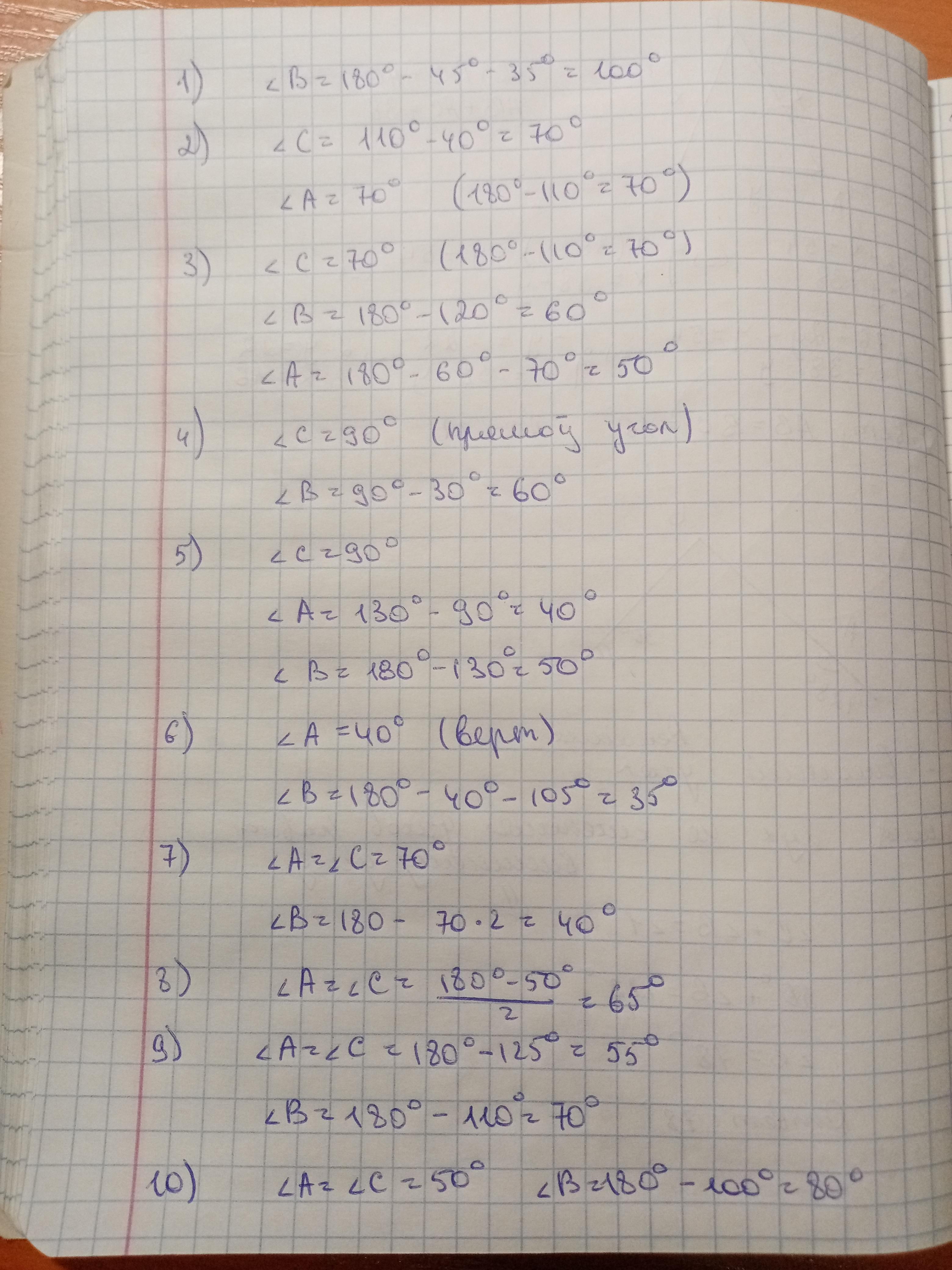 3) угол В = 60°,угол С = 70°,угол А = 50°