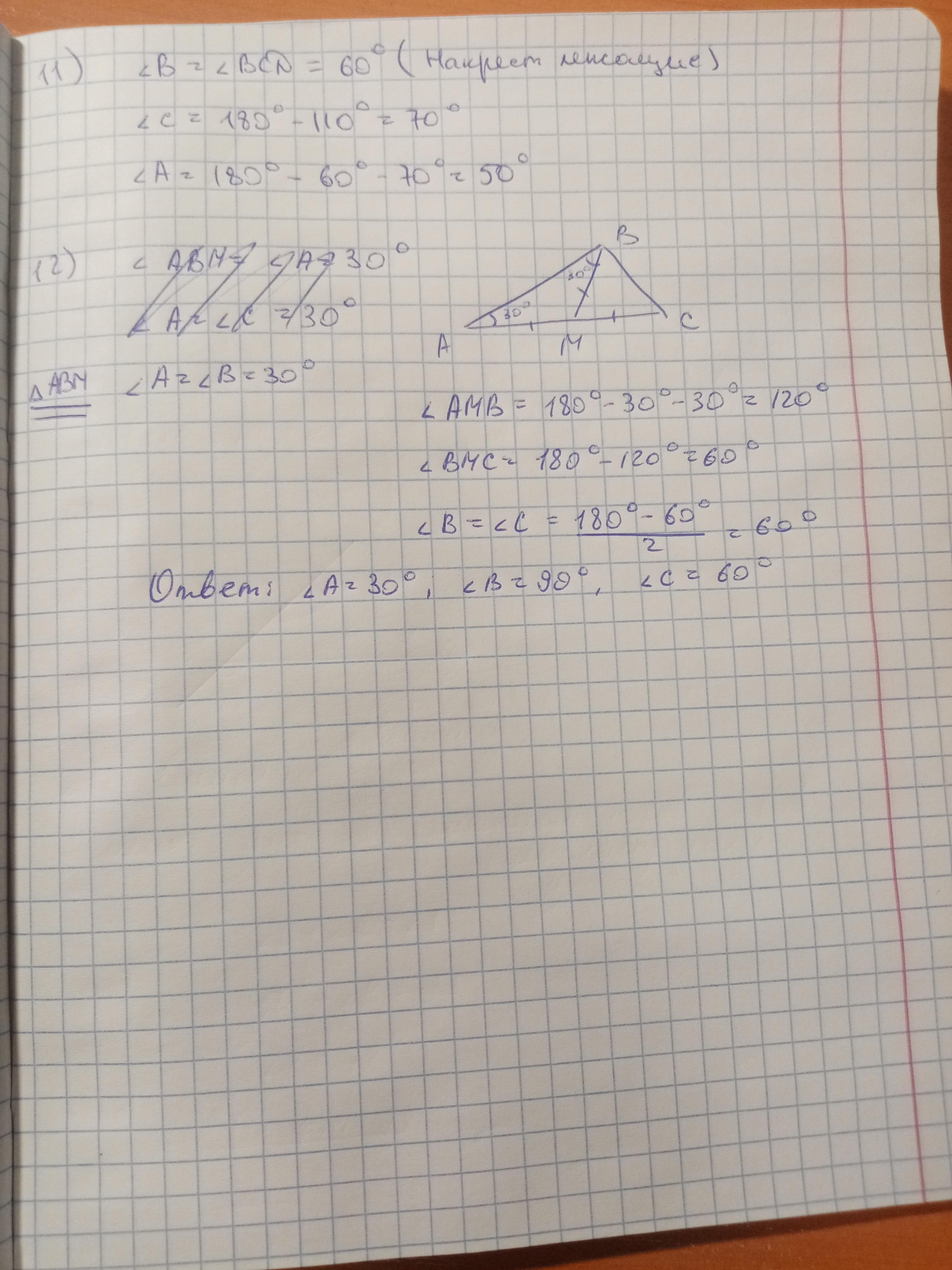11) угол С = 70°,угол А = 50°,угол В = 60°