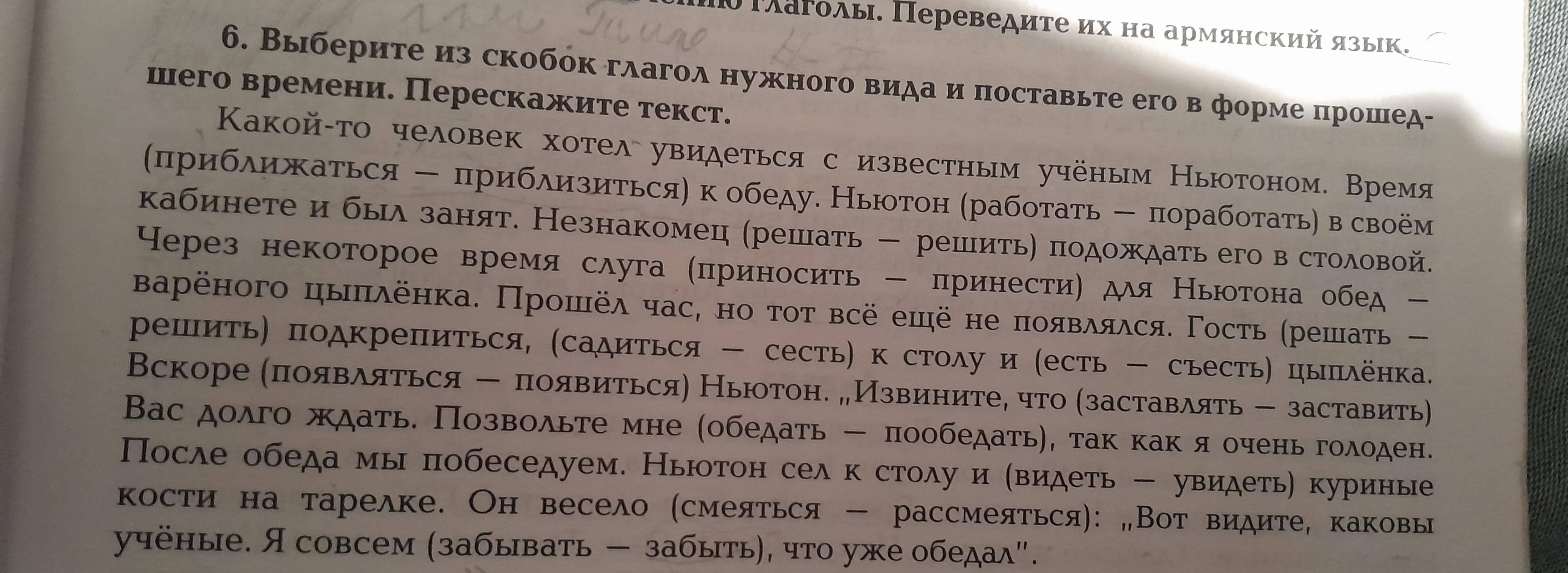 Выбрать глагол нужного вида и поставить его в форму прошедшего времени: