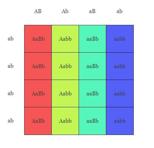 Итого мы получаем, что родители имеют генотип AaBb и aabb, а дети: 4AaBb, 4Aabb, 4aaBb, 4aabb.