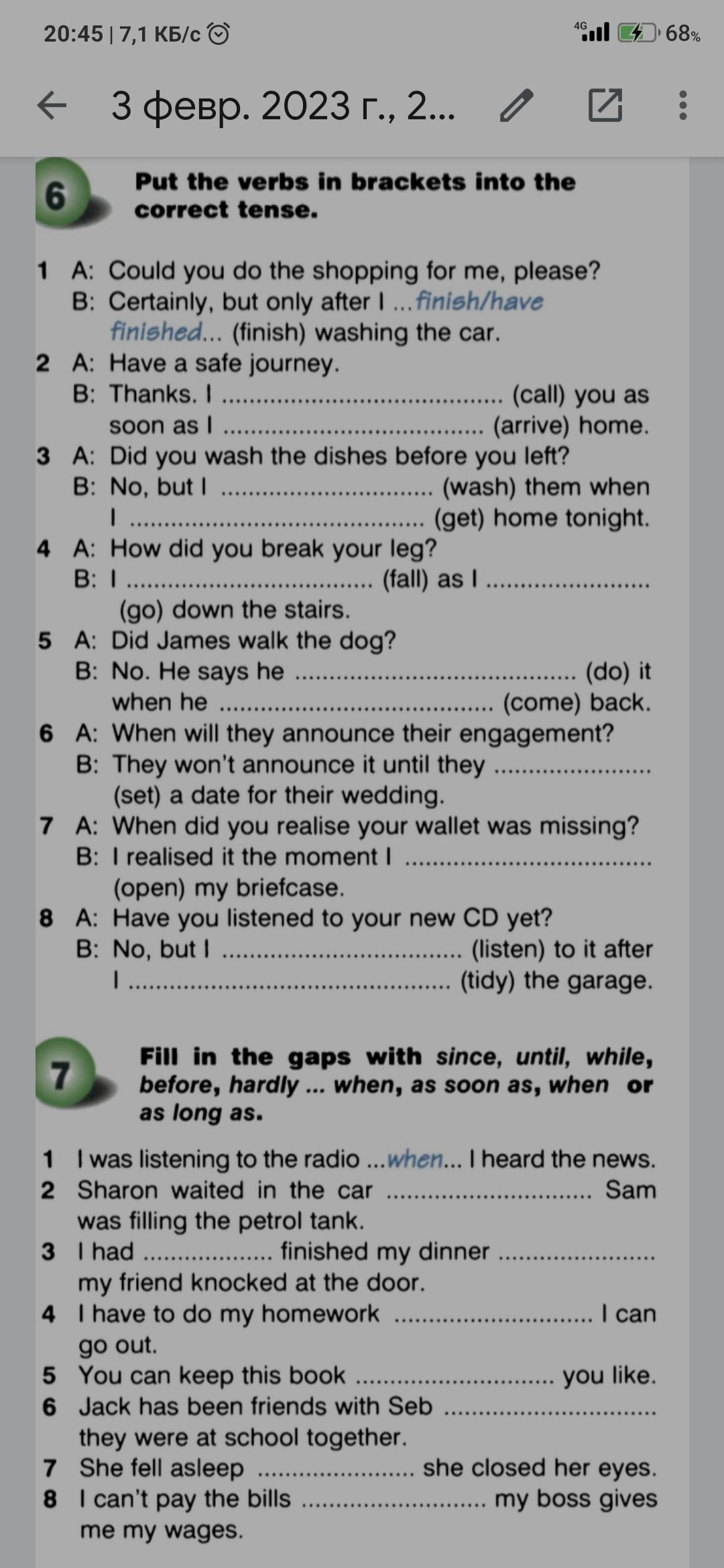 №1 Sentences where the words in parentheses are used in the correct tence: