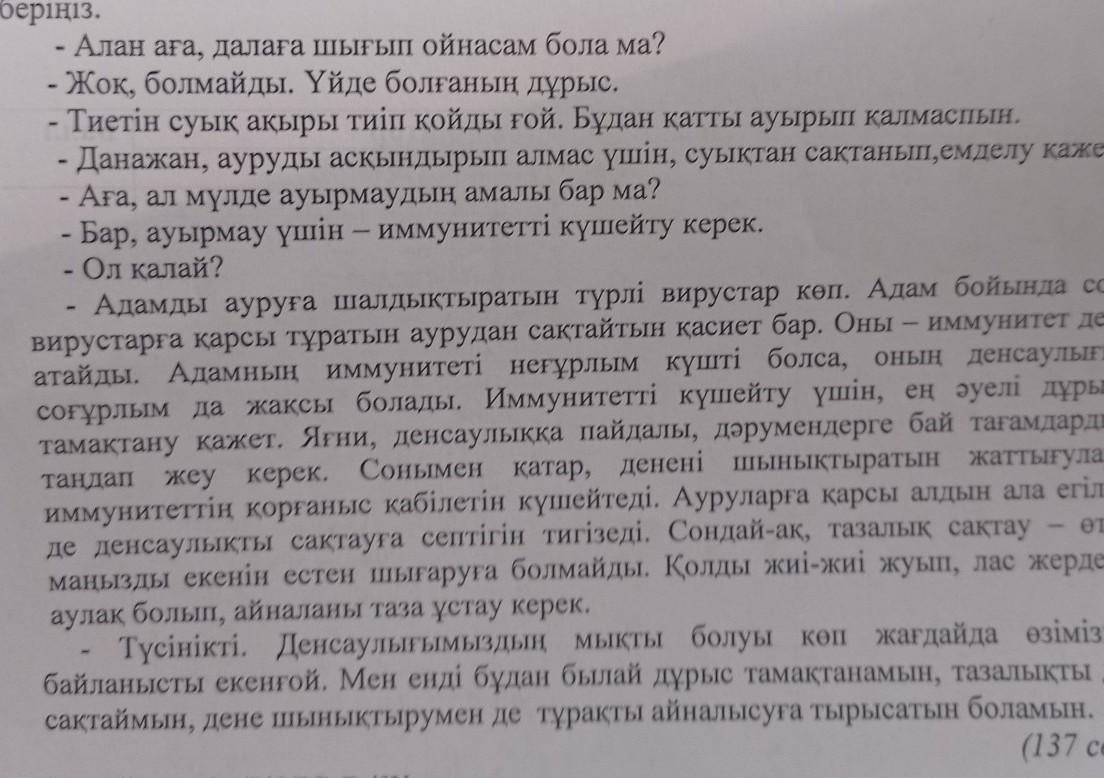 2-тапсырма. Мәтінді мазмұны бойынша жоспар құрыңыз. 1.Кіріспе 2.Негiзгi бөлiм 3.Қорытынды Жоспар:срочно пжжж