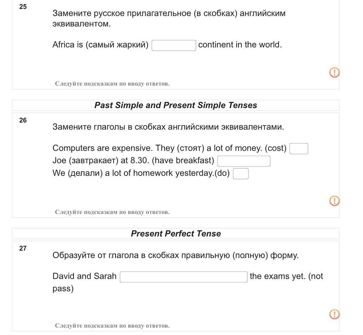 25 the hottest 26 cost -has breakfast -did 27 have not passed