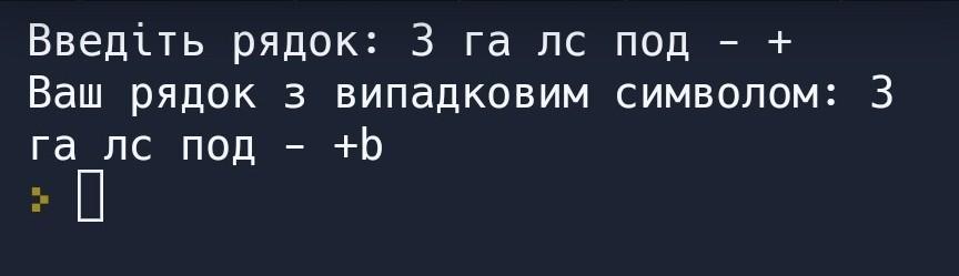 print(f"Ваш рядок з випадковим символом: {new_text}")