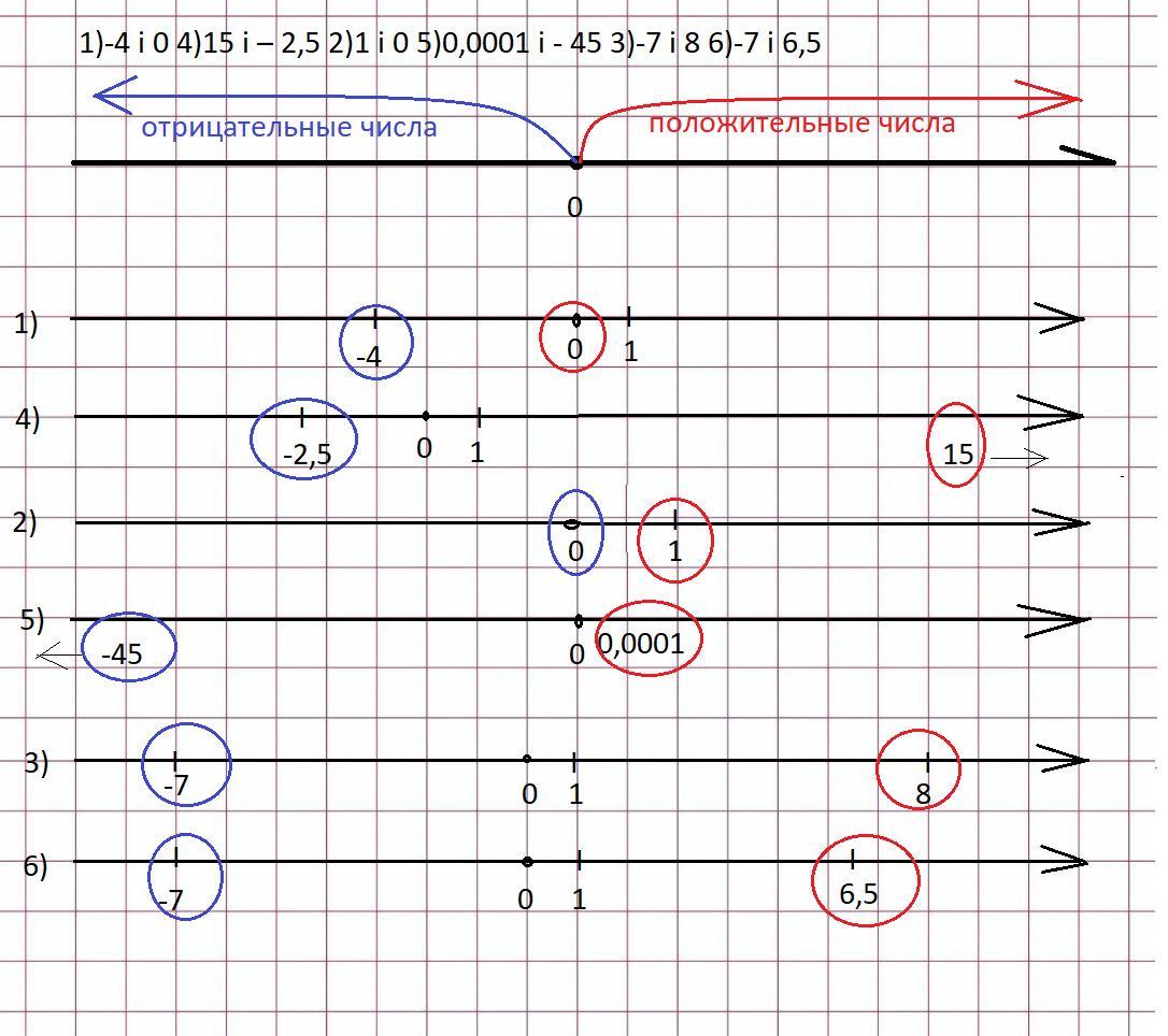 Спираючись на координатну пряму порівняйте числа: 1)-4 і 0 4)15 і – 2,5 2)1 і 0 5)0,0001 і - 45 3)-7 і 8 6)-7 і 6,5