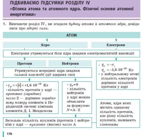 1. Вивчаючи розділ IV, ви згадали будову атома й атомного ядра, довіда-