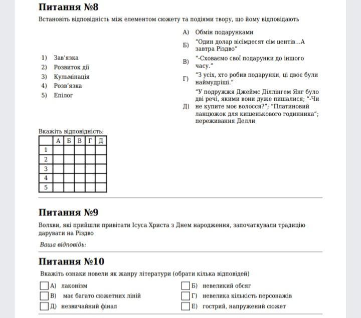 Відповідь: 8) 1.Г; 2.Б; 3.А; 4.Д; 5.В.