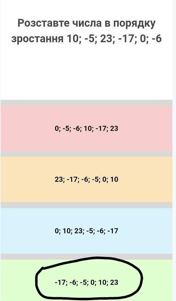 -17; -6; -5; 0; 10; 23