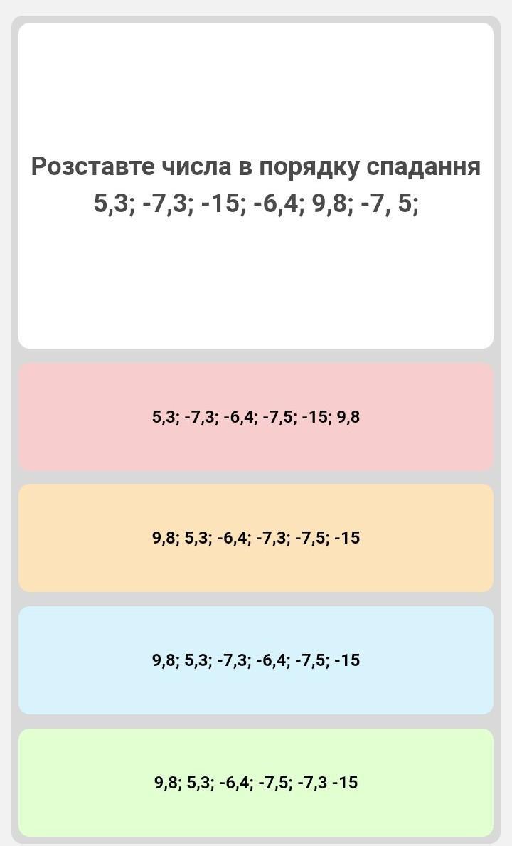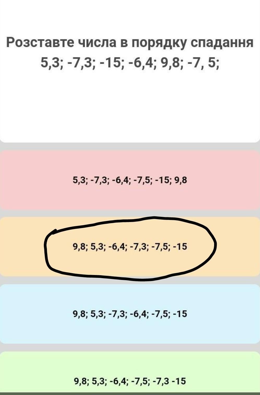 9,8; 5,3; -6,4; -7,3; -7,5; -15