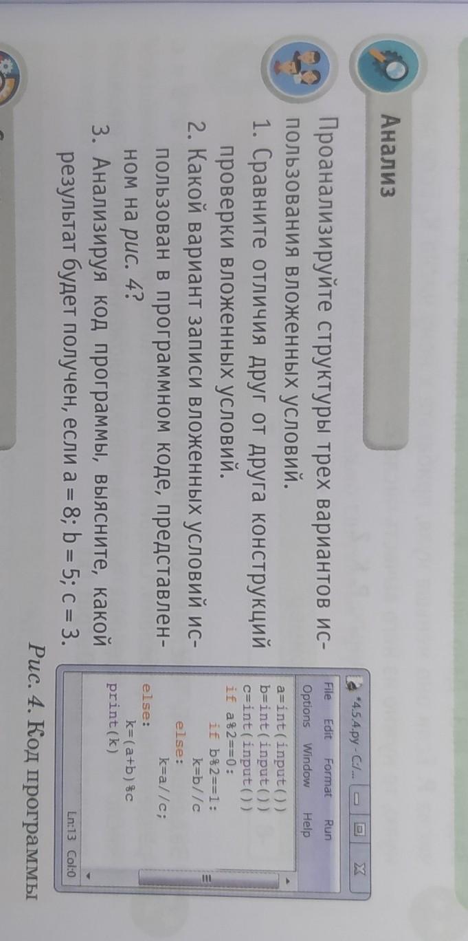 3. Анализируя код программы, выясните, какой результат будет получен, если а = 8; b = 5; c = 3.