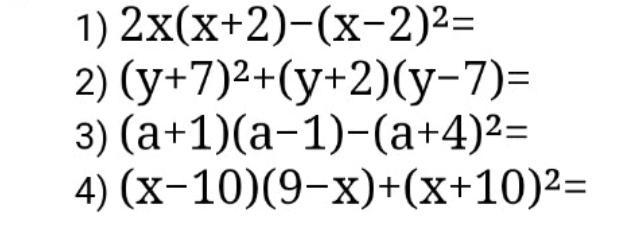 3) (a+1)(a-1) - (a+4)^2 = a^2 - 1 - (a^2+8a+16) = a^2 - 1 - a^2 - 8а - 16 = -17 - 8а