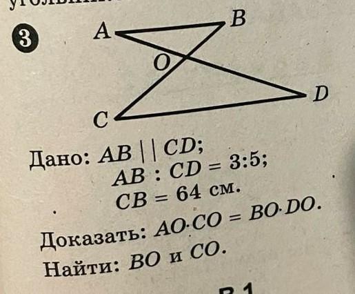 AB:CD=3:5 подпишите на чертёж как АВ =3х, а СД= 5х