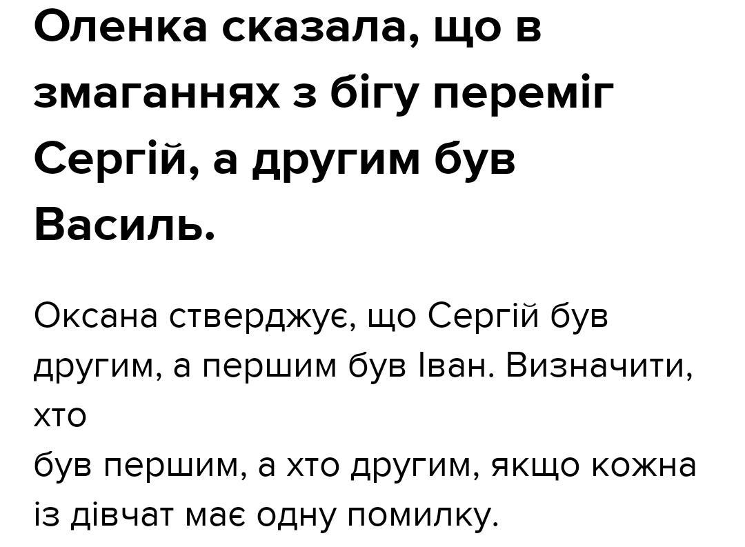 Оленка бреше що переміг Сергій, а Оксана бреше що сергій був другий