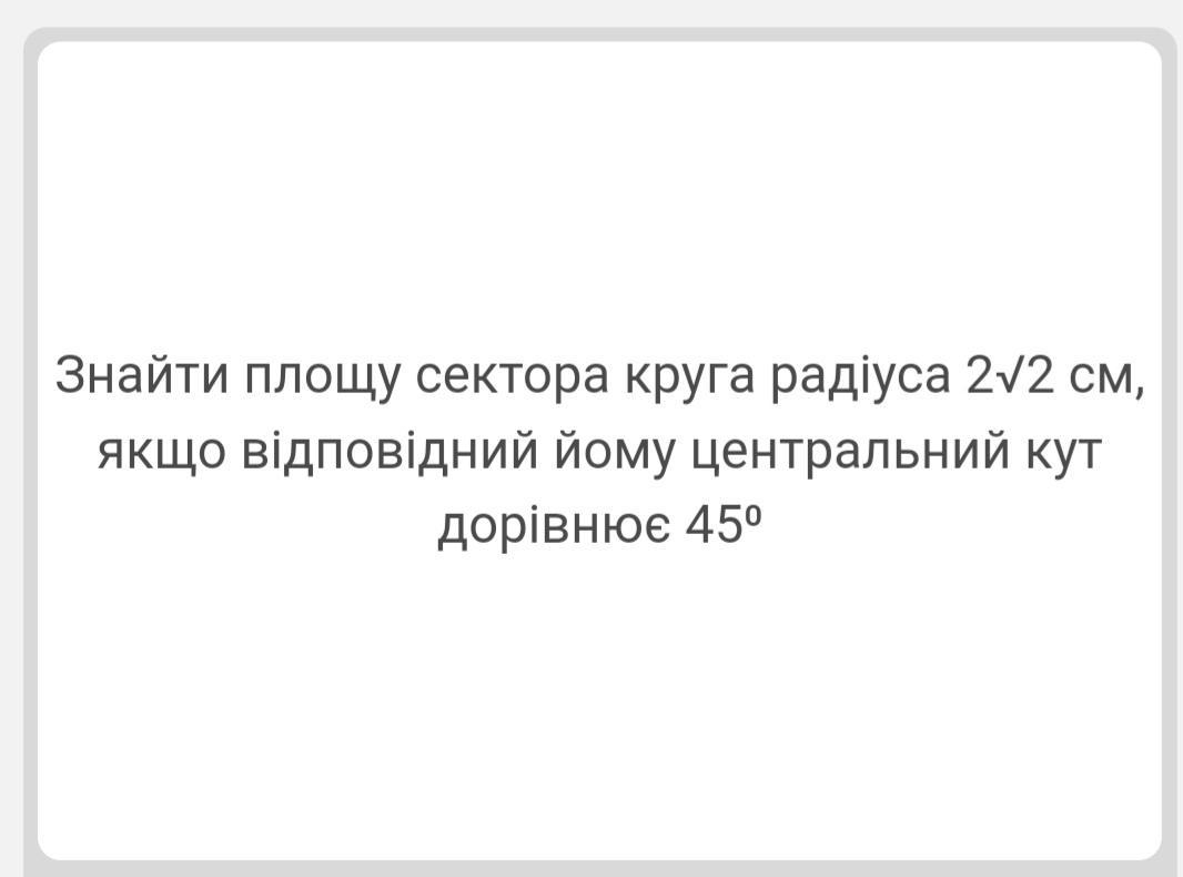 Площа сектора дорівнює пR² a/360=п4²•45/360=2n≈6,28