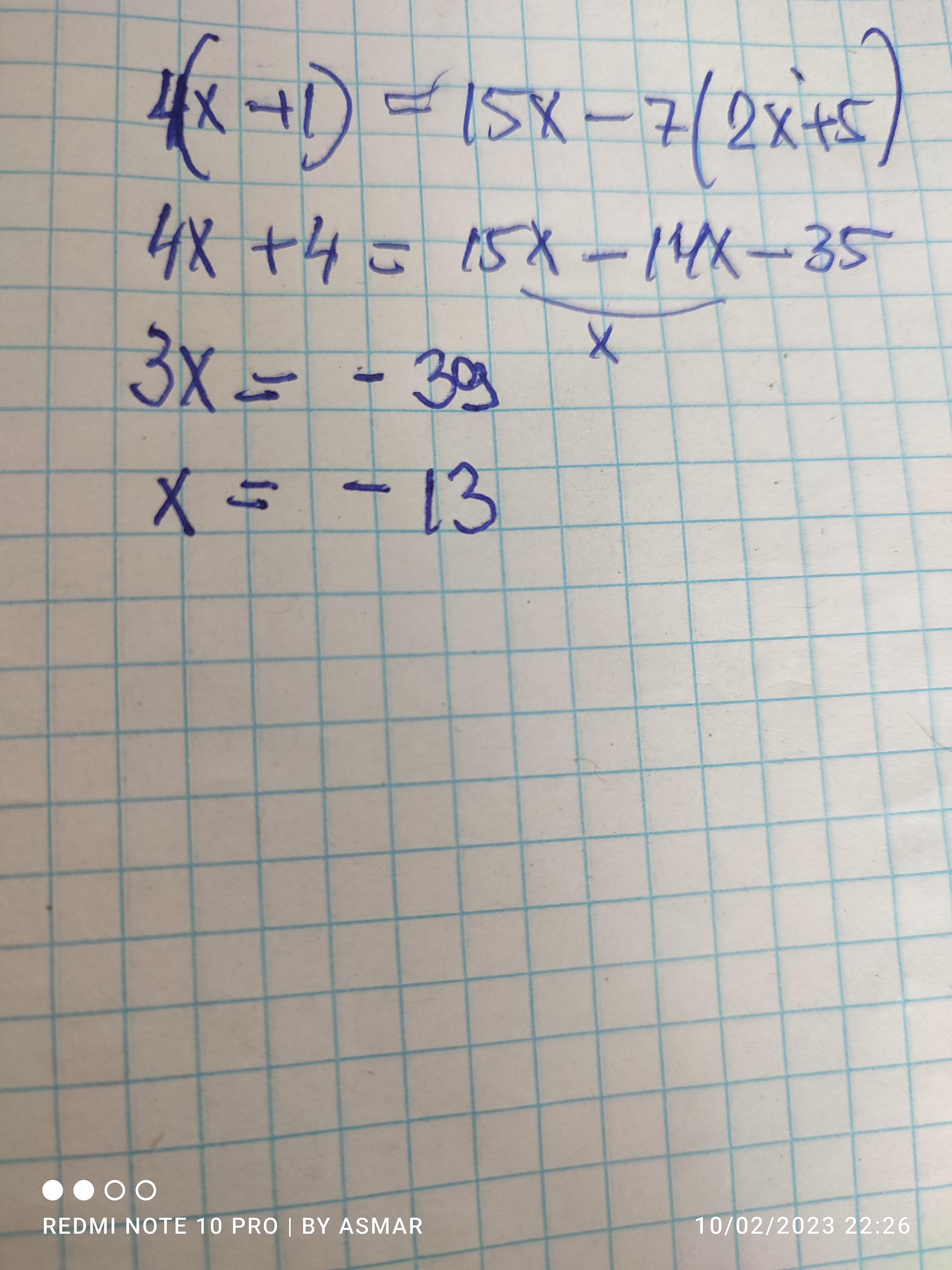4(х+1)=15х-7(2х+5)