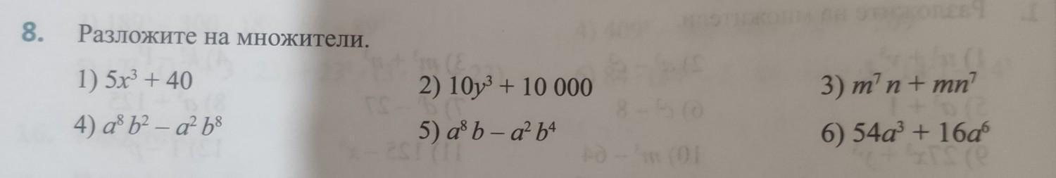 1) 5х^3+40=5(х^3+8)=5(х+2)(х^2-2х+4)