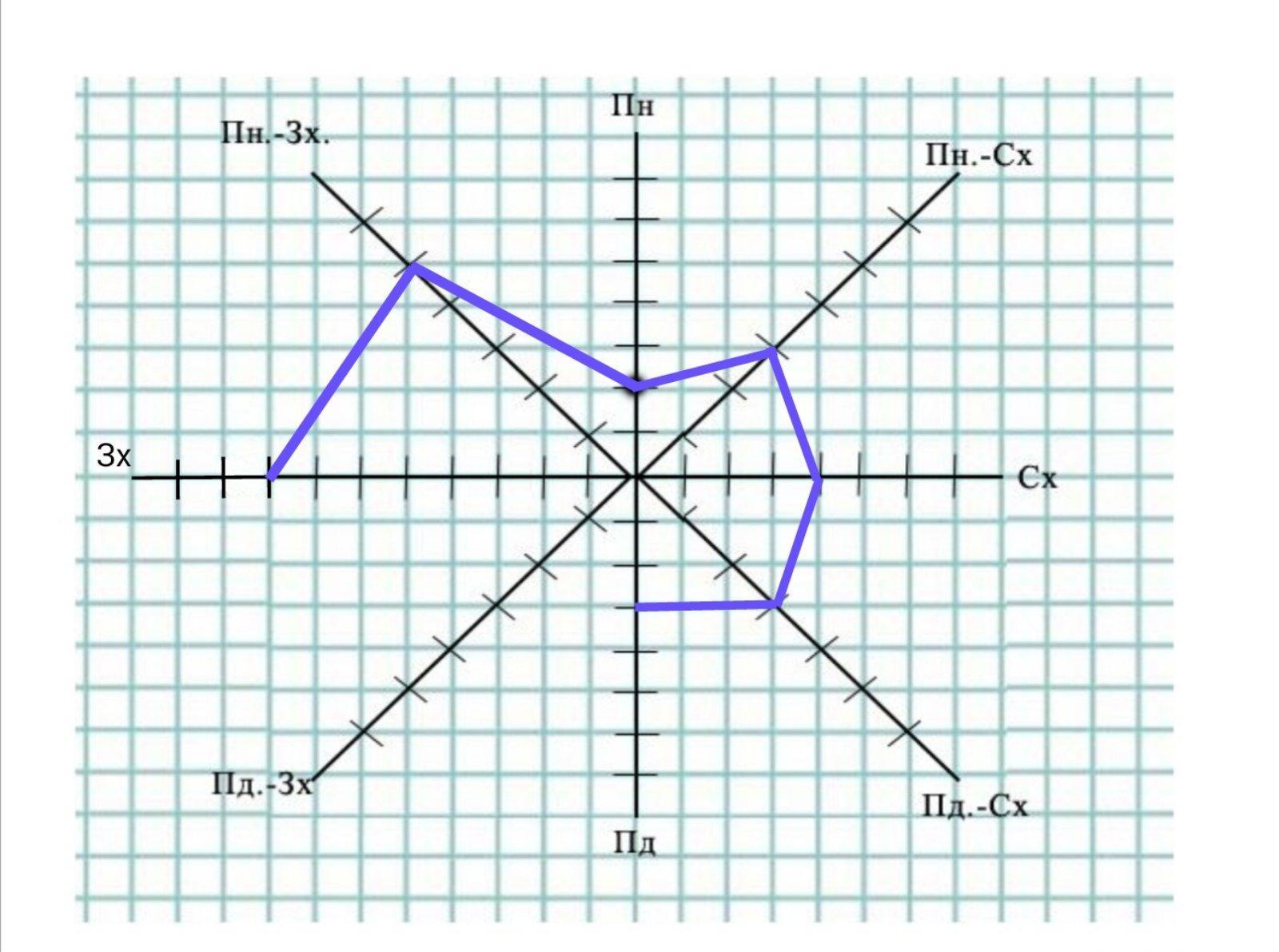 Оскільки для пд-зх вітру значення відсутні у твоєму записі, значить цього вітру не було, тому відмітку на цьому напрямку не ставимо.
