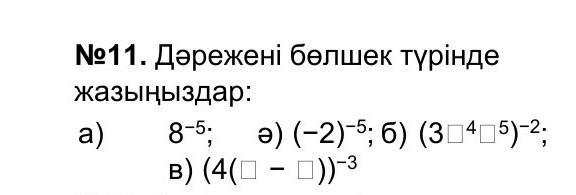 & ) (- 2 )⁻⁵ = 1/(- 2 )⁵ ; в ) ( 4( a - b ) )⁻³ = 1/( 4( a - b ) )³ .