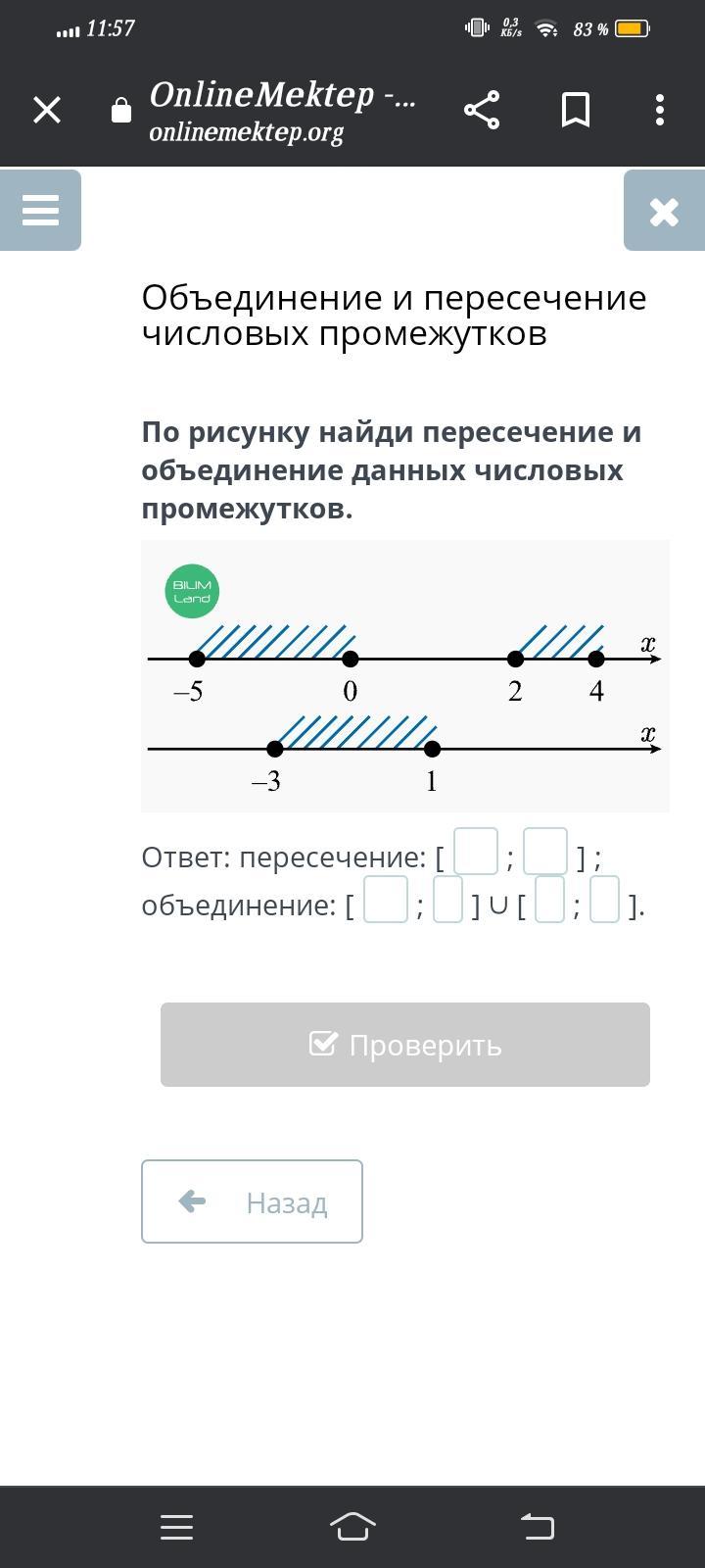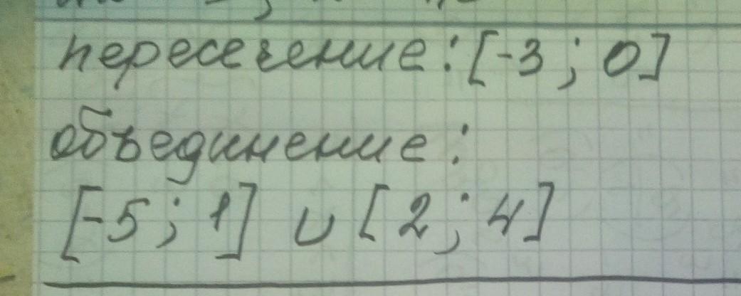 По рисунку найди пересечение и объединение данных числовых промежутков.