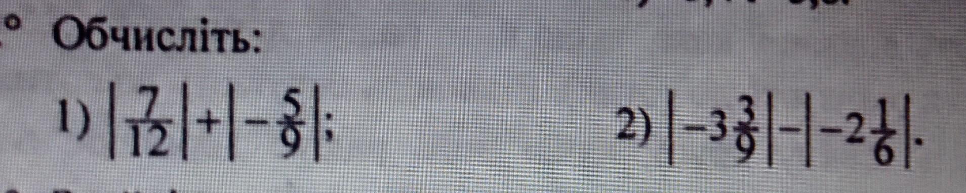 1) |7/12| + |-5/9| = 7/12 + 5/9 = 21/36 + 20/36 = 41/36 = 1 целое 5/36