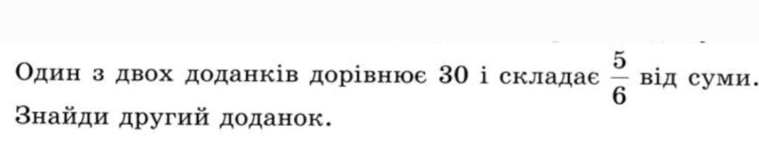 1) 30 : 5/6 = 30 * 6/5 = 6 * 6/1 = 36/1 = 36 - сумма двух чисел