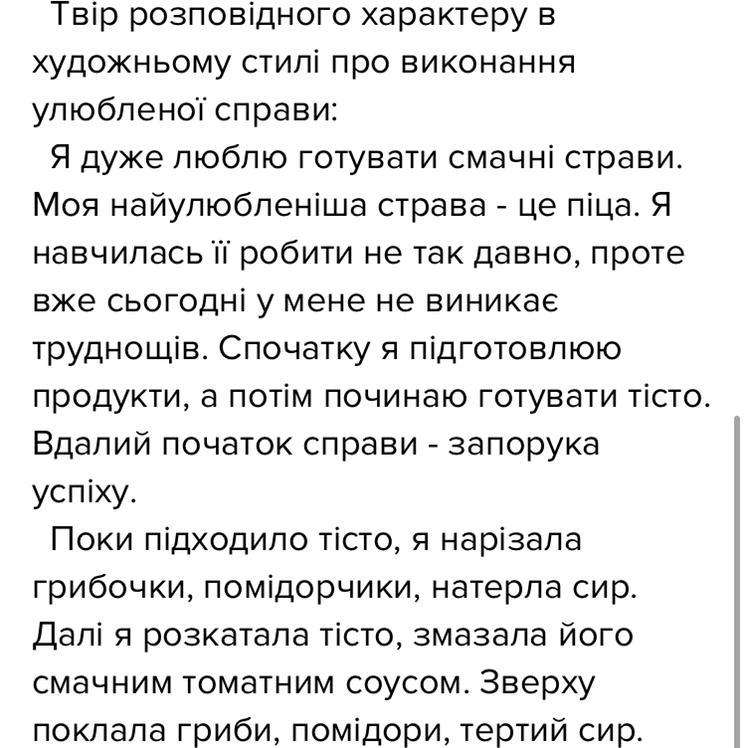 Напишіть твір розповідного характеру про виконання певної роботи. В художньому стилі.