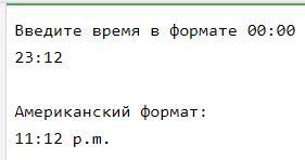 Если вы собрались посетить Америку, то должны знать, что там 12-часовой формат времени. Например, вместо 23 часов у них 11 p.m. Напишите программу, которая переводит время из 24-часового формата в 12-часовой. Приставка a.m пишется для часов до полудня, p.m - после полудня
