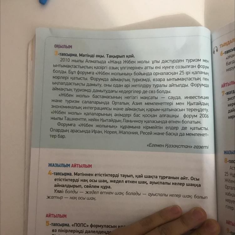 4 тапсырма .Надо найти глаголы из текста ,превратить в начальную форму и написать жедел өткен шақ ,келер шақ,нақ осы шақ.Пожалуста ответи правильно