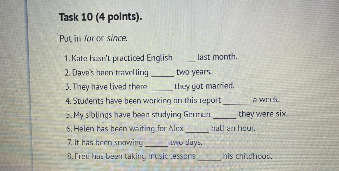 1 since 2 for 3 since 4 for 5 since 6 for 7 for 8 since