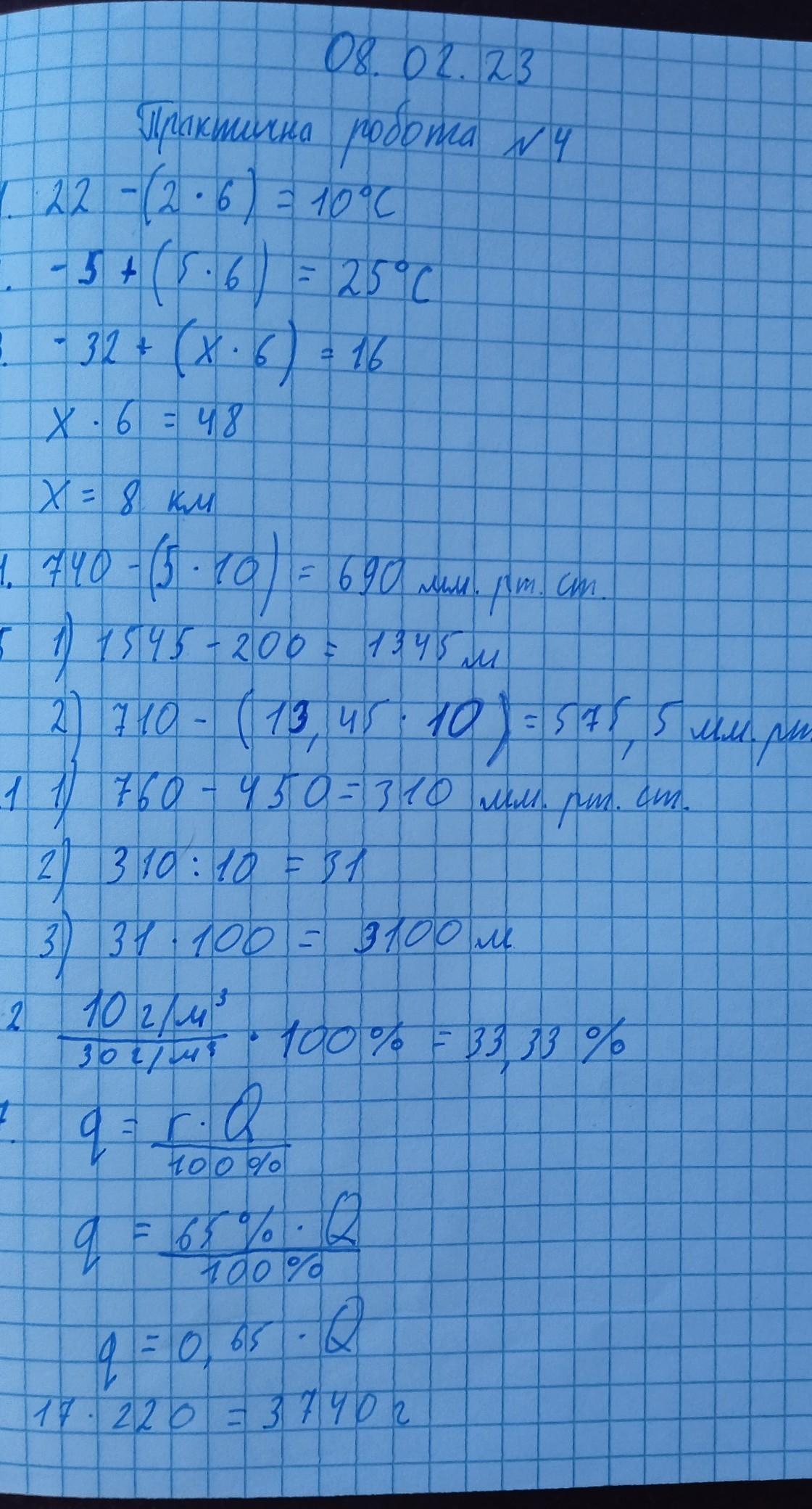 3. ТИСК ПОВІТРЯ НА ВЕРШИНІ ГОРИ СТАНОВИТЬ 450 ММ. РТ. СТ., А БІЛЯ ЇЇ ПІДНІЖЖЯ – 760 ММ. РТ. СТ.. ВИЗНАЧИТИ ВИСОТУ ГОРИ.