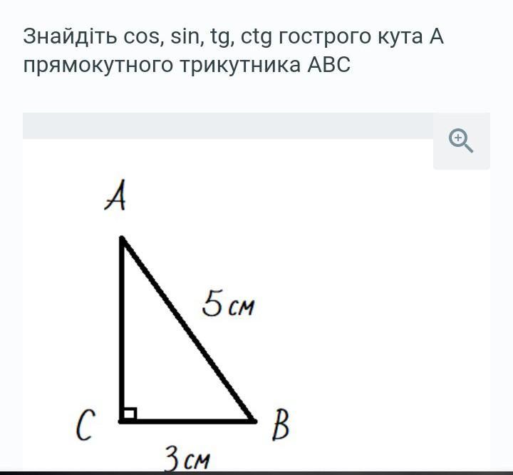 У ∆ABC(∠C = 90°; AB = 5 см; BC = 3 см)
