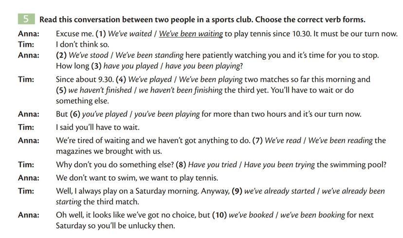 Tim: Since about 9.30. (4) We’ve played two matches so far this morning and (5) we haven’t finished the third yet. You’ll have to wait or do something else.