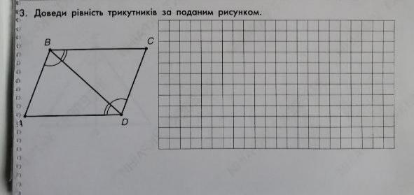 Отже, ΔABD = ΔCBD за стороною та двому прилеглимим до неї кутами