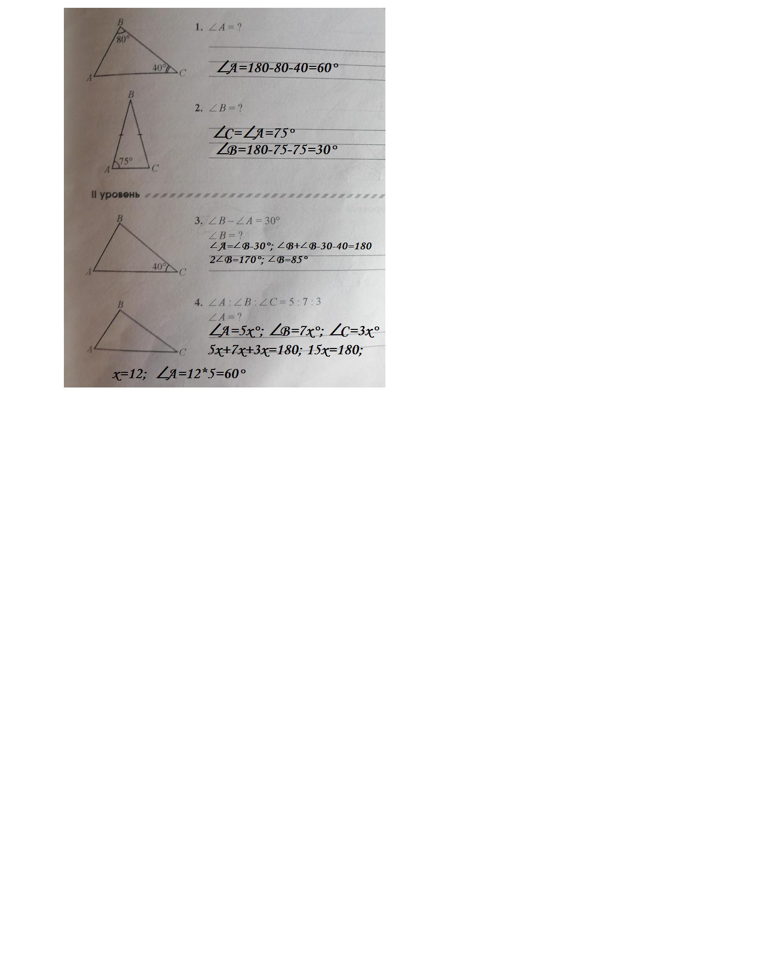 3) ∠С=40° , ∠В-∠А=30°