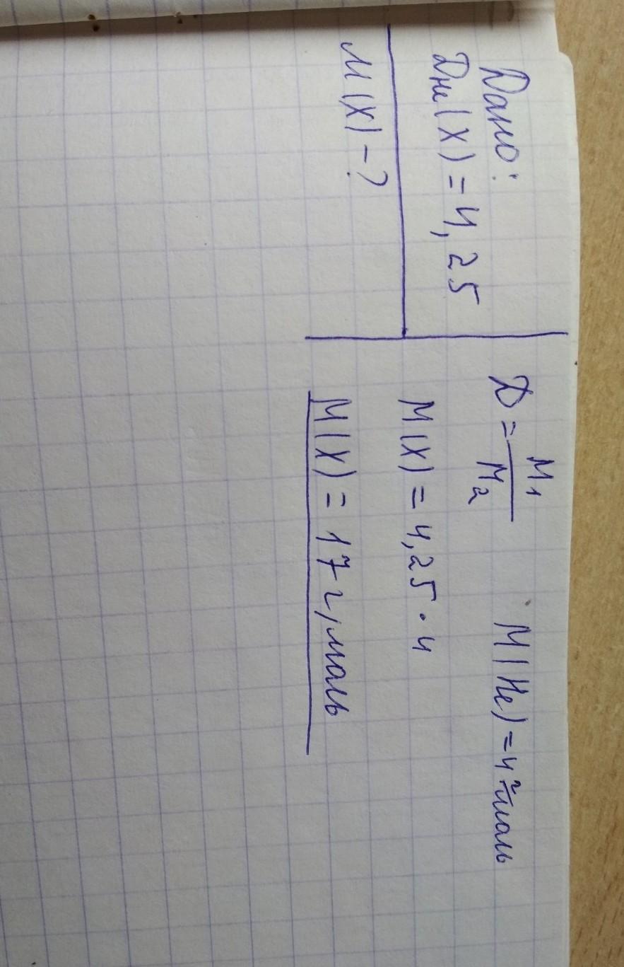 Відносна густина газу Х за гелієм становить 4,25. Обчисліть молярну масу газу Х.