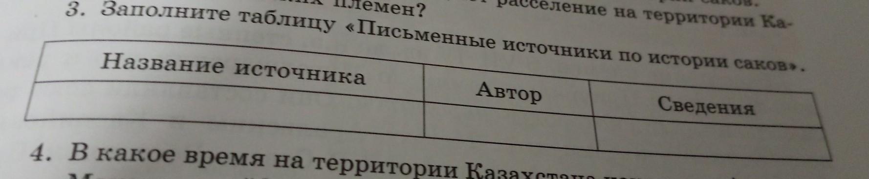 Заполните таблицу «Письменные источники по истории саков. Название источника, Автор, Сведения. История Казахстана.