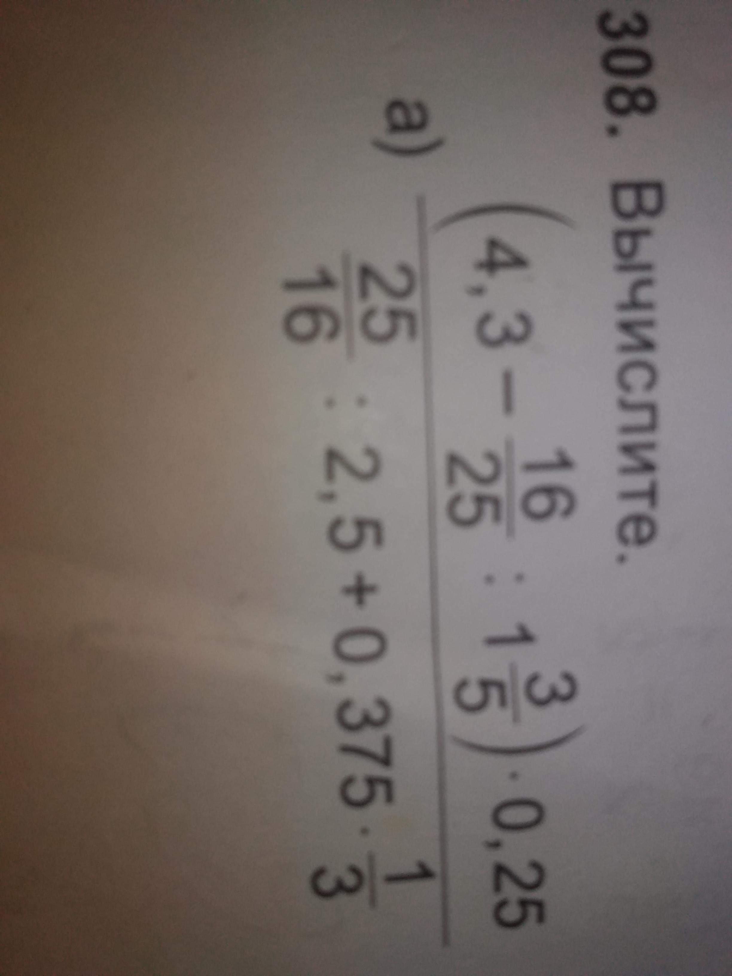 4) 25/16 : 2,5 = 25/16 : 25/10 = 25/16 * 10/25 = 1/8 * 5/1 = 5/8